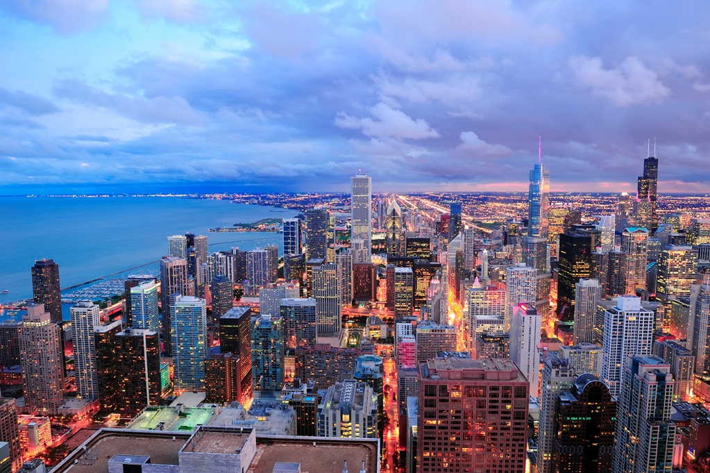 Localizada às margens do gigantesco lago Michigan, a cidade possui uma agradável atmosfera urbana entre suas águas e arranha-céus. A Willis Tower (antiga Sears Tower) domina o perfil da cidade, tendo sido por um quarto de século o maior edifício do mundo. Outra vista deslumbrante fica no John Hancock Center, não tão alto, mas mais próximo da margem do lago.