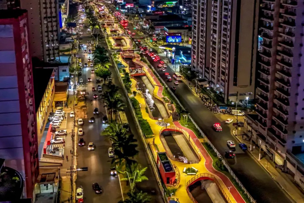 Parque de 1,2 quilômetro revitalizou canal central da avenida Visconde de Souza Franco, com áreas de convivência e de lazer
