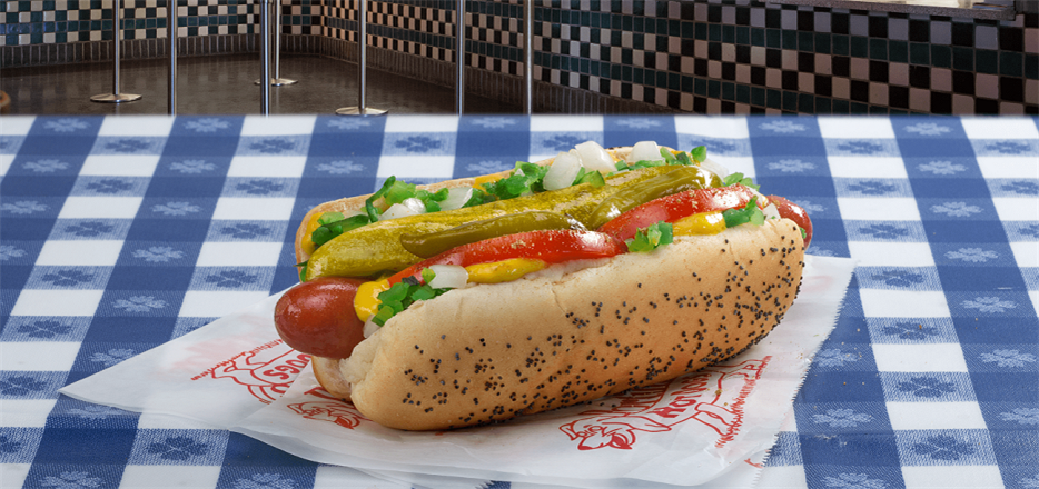 Um dos diferenciais do cachorro-quente ao estilo de Chicago é o pão com sementes de papoula. Sua versão completa, com todas as guarnições, leva mostarda, cebola, picles e fatias de tomate.